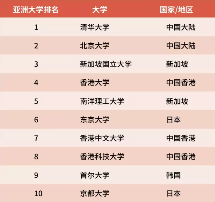 清華北大位列亞洲大學(xué)前二