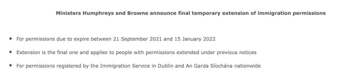 這是愛爾蘭自2020年3月以來的第7次居留許可延期,也將是最后一次。這就意味著所有持有有效期至2020年3月的居留許可的人們,可以合法居留到2022年1月15日。