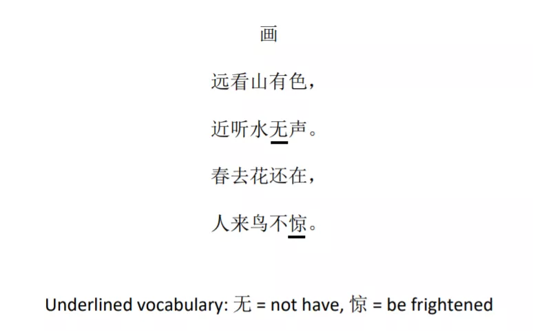 這首詩描述了一幅畫中的四種情形。描述其中的兩個,用英語回答。
