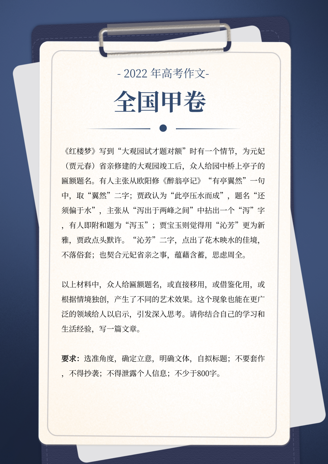 今年國內高考,語文作文題目公布后,最引人注目的,非全國甲卷作文莫屬,關于紅樓夢、大觀園、賈寶玉……