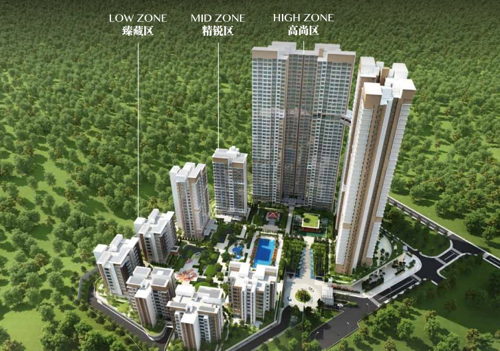 項目還配套有一個室外泳池,天際會所,室內迷你高爾夫球場,室外羽毛球場和兒童游樂區等。項目配置 3 層地面停車場,規劃有1908 個車位,每戶至少配備 2 個車位,而大戶型更最多配備 4 個車位。