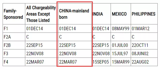 表B是“可以遞交申請的最早日期(遞件排期)”(Dates for Filing Applications),即假如可用的情況下遞交I-485的排期。如果您的優(yōu)先日在表B之前,您就可以進行I-485的遞交動作。