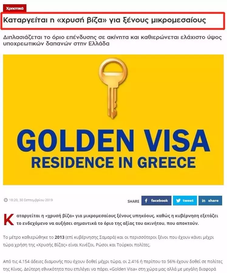 △Sofokleousin希臘黃金簽證變政報(bào)道截圖