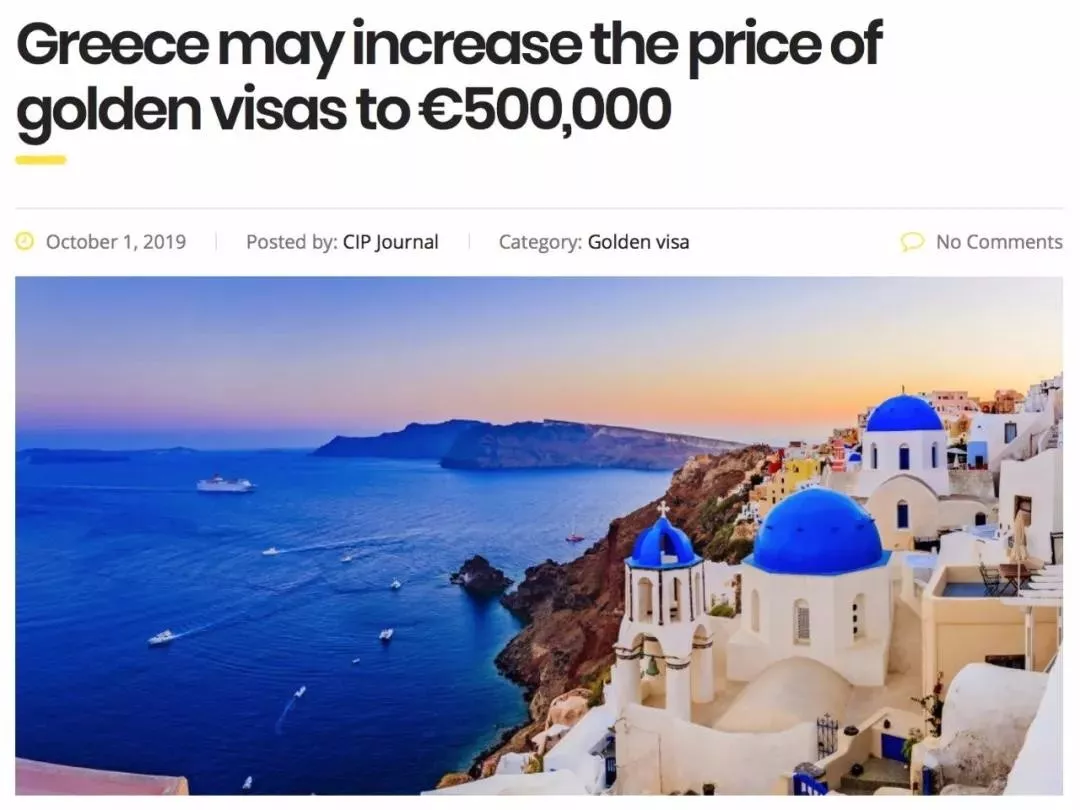 外媒 | 希臘黃金簽證價(jià)格將翻番,25萬(wàn)歐購(gòu)房移民時(shí)代或終結(jié)