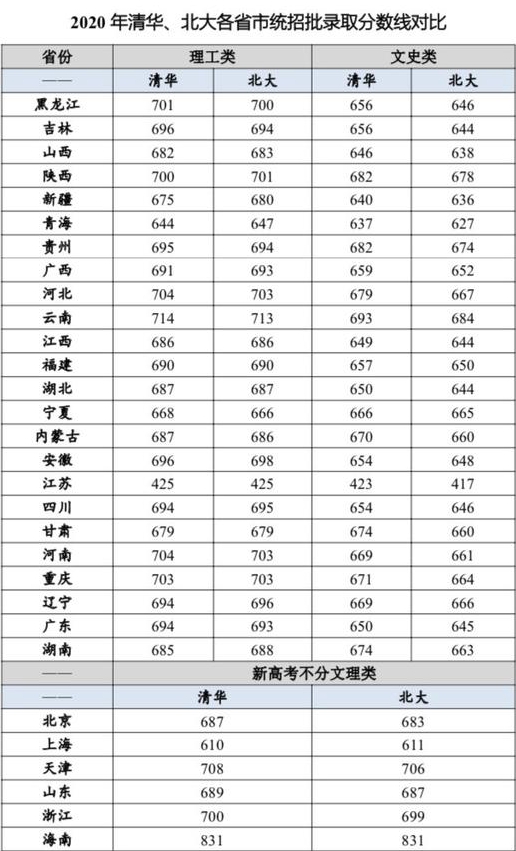 而2020清華、北大各省統招批錄取分數線,理工類接近700分,文史類約650分,比華僑生錄取分數線整整高出兩三百分。