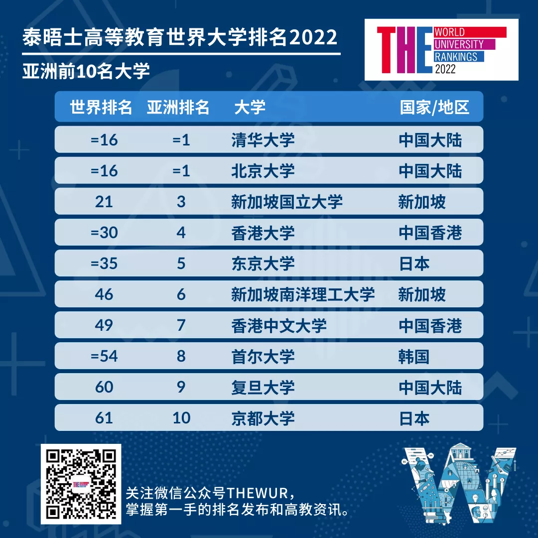歷史新高!2022 THE世界大學排名發布!清北并列亞洲第一!